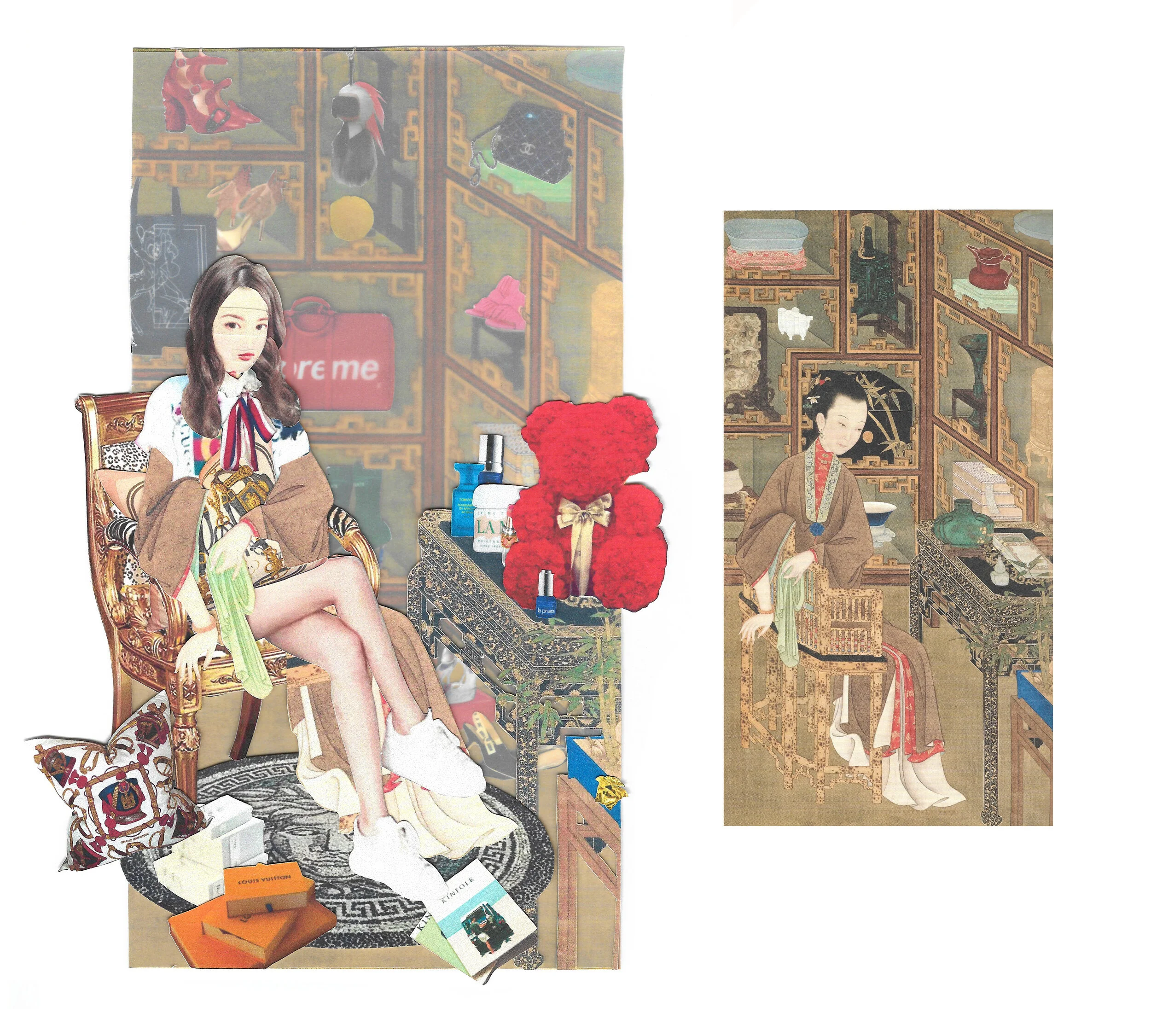 “Pleasure of the Twelve Beauties” is a series of twelve collages. that addresses the issue of materialism, westernization and standards of beauty.